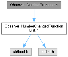 Declaration of the NumberProducer structure along with its support functions, NumberProducer_Create(), NumberProducer_Destroy(), NumberProducer_SubscribeToNumberChanged(), NumberProducer_UnsubscribeFromNumberChanged(), and NumberProducer_UpdateNumber(), as used in the Observer Pattern.
