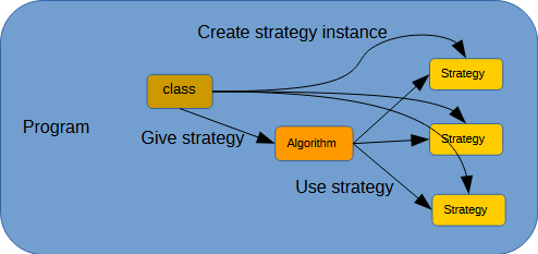 In a more general form, a "Strategy" is nothing more than a class implementation hidden behind an abstract interface. This allows the implementation to be changed without affecting the caller. The Strategy pattern takes this one step further to allow entire algorithms to be hidden behind the interface and then swap in different instances of the interface at run time to change the algorithm being used.